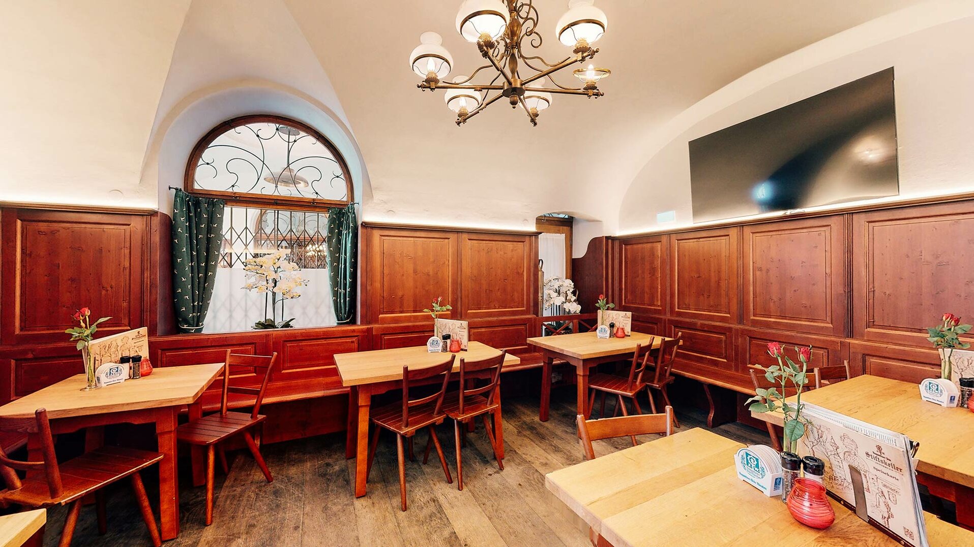Die Tiroler Stube grenzt direkt an die Wappenstube an. Diese kleine Stube bietet das perfekte Ambiente für kleine Gruppen oder gemütliche Familienfeiern